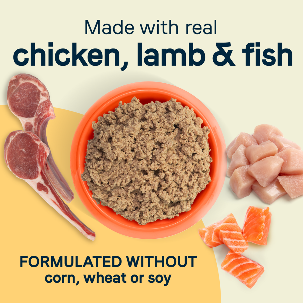 CANIDAE® All Life Stages wet food recipes are formulated for all dogs. That makes mealtimes for multiple dog households much easier than dealing with multiple cans of different foods. Single dog households will also enjoy the bene?ts of one can for all dogs—no more guessing or switching based on your pet’s age, breed, or size. They’re slow-cooked in broth for great tasting nutrition your pets will love. Choose from a variety of ?avors in convenient serving sizes.