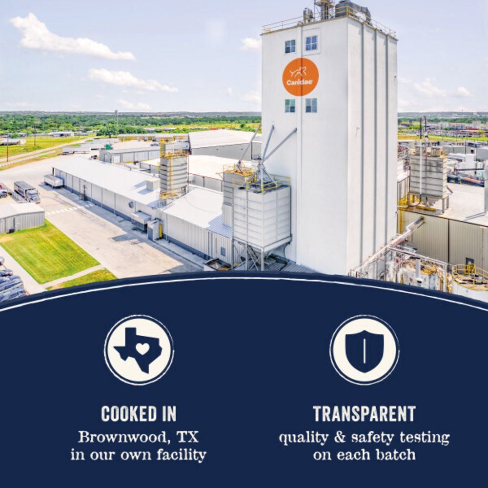 Canidae Pure Farm To Bowl was born from our belief that quality pet food starts long before it reaches the bowl. It starts in the soil, with farmers we trust and through the choices we make. That’s why we use responsibly sourced proteins like wild caught salmon and regeneratively farmed ingredients that help restore soil and promote biodiversity. These nutrient-rich ingredients nourish your dog’s health and well-being. Cooked in our Brownwood, Texas facility in small batches with leading safety, quality and nutritional standards. Responsibly sourced nutrition from the farm to your dog’s bowl.