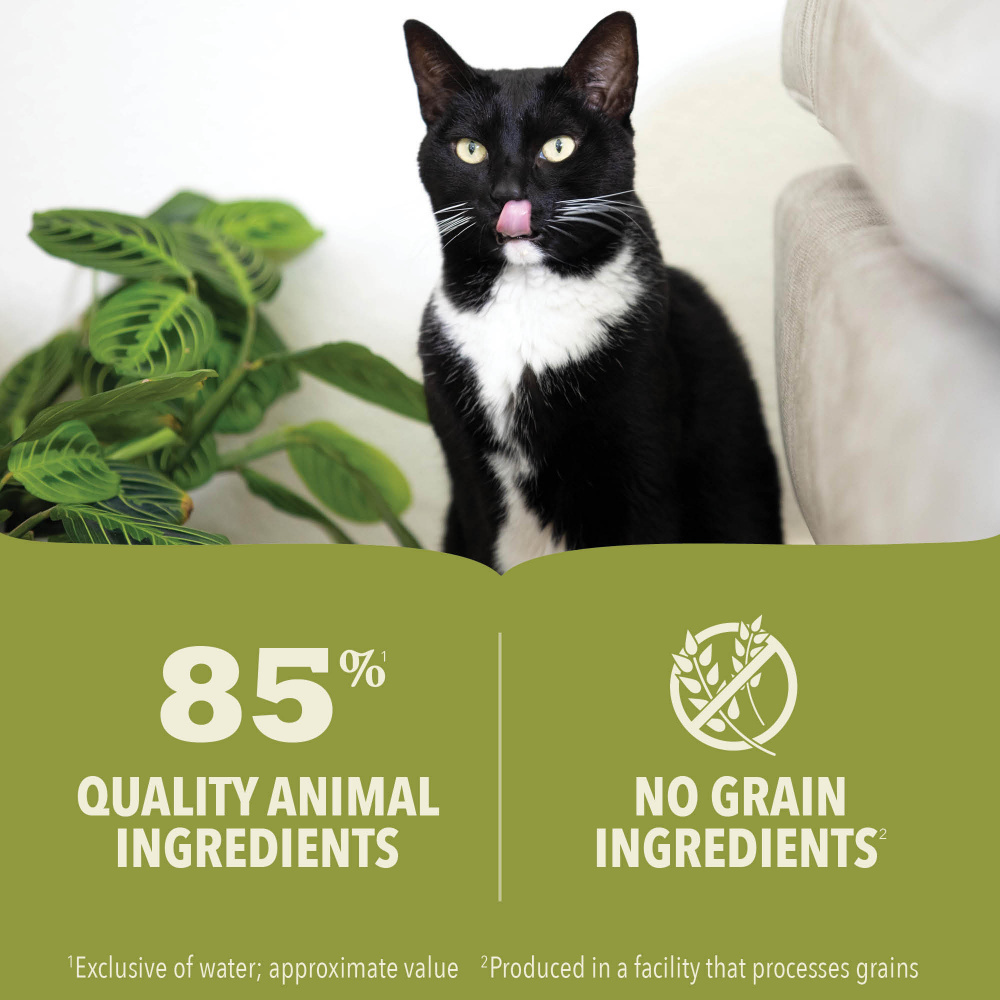 - High protein cat food thoughtfully crafted with 85% animal ingredients** and no grains*** to nourish and satisfy your cat completely with every bite