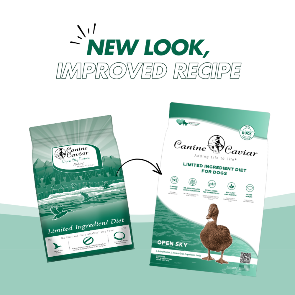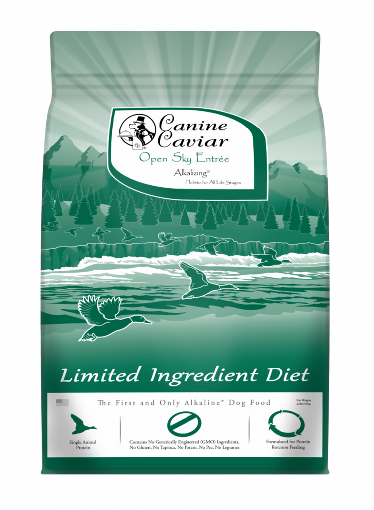 Canine Caviar’s Open Sky Limited Ingredient Alkaline Holistic Dog Food is a complete and balanced formula containing an excellent source of high-quality duck. Duck provides an excellent source of iron, selenium, and niacin intended for all breeds and all life stages. This formula is also an amazing option when considering a kibble to support the growth of large breed puppies. Canine Caviar’s Open Dog Food is a grain free formula and a nutritious food to that promotes a healthy lifestyle for your four-legged family member.-Single protein diets -Single carbohydrate diets -Made with fresh dehydrated meat that is hormone, pesticide and antibiotic free.-Does not contain chemical preservatives, by-products, GMO, glutens, BHA, BHT, ethoxyquin, corn, wheat or soy.