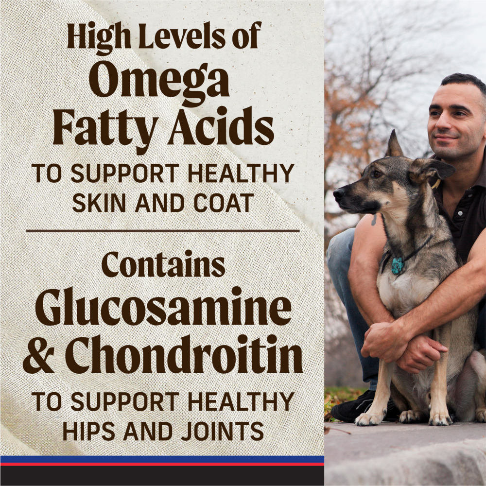 Salute a hero when you serve Merrick Backcountry Grain Free Dog Food, Hero’s Banquet Recipe. Hero’s Banquet dry dog food celebrates and calls attention to the work of our partner K9s For Warriors. Real deboned beef is the first ingredient in this natural, with added vitamins, minerals, and nutrients recipe, a high protein dog food that helps maintain lean muscle mass and energy levels. This real meat dog food contains a holistic blend of kibble and freeze-dried raw pieces inspired by an ancestral canine diet and is crafted to provide the taste of raw dog food in a convenient recipe. High levels of Omega fatty acids in this premium adult dry dog food nourish your dog’s skin and coat, as well as high levels of glucosamine and chondroitin to support healthy hips and joints. Backcountry Grain Free dog food is gluten free for a wholesome and healthy dog food option. Merrick dog food recipes are proudly founded in Hereford, TX, crafted in USA facilities.