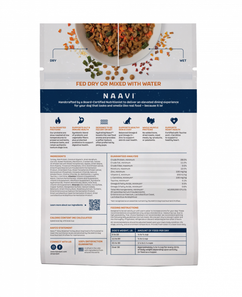 Naavi Slow Roasted Bowls are represent the newest innovation in alternative feeding for dogs Crafted by a certified board nutritionist NAAVI boasts all the benefits of small batch fresh foods with the convenience of dry food