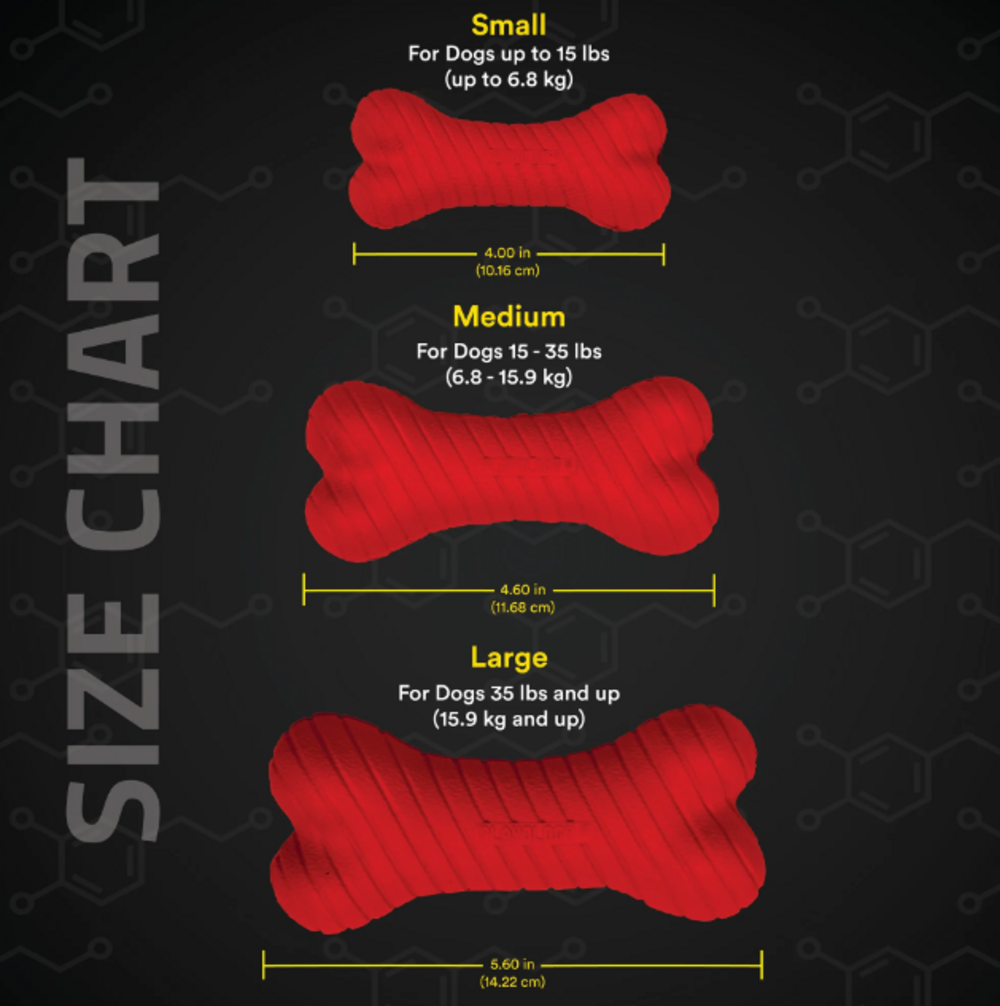 The Science of Scent Unleashed! Playology designs scented toys made from dog-safe materials that keep dogs engaged longer 7X as long as an unscented toy. Our Dual Layer Bone features an enticing scent and a unique, dual layer, ridged design that gives your dog a safe and satisfying chewing experience much like he or she would have in the wild. It is suitable for all ages and ideal for moderate and heavy chewers. Available in three sizes and a variety of mouthwatering scents allowing you to find the combination that best suits your dog's size and taste.