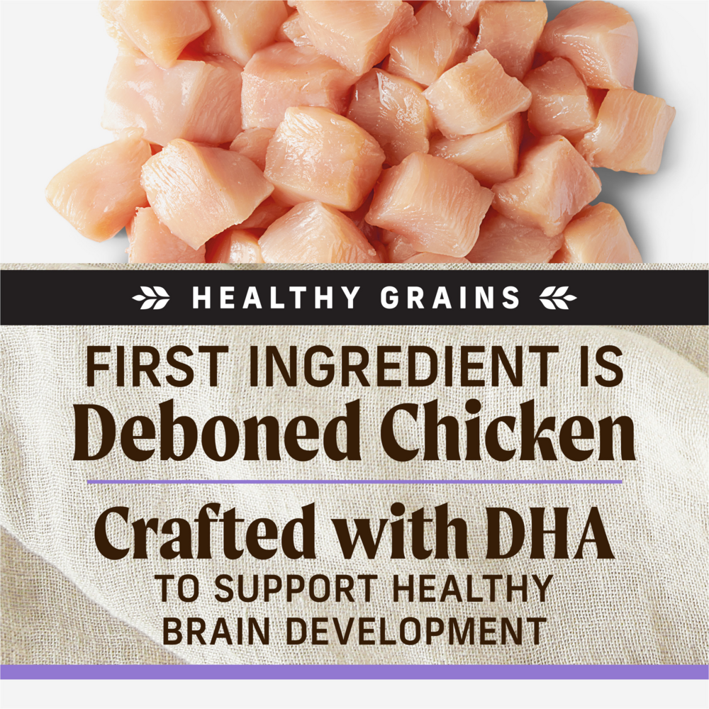 - Real deboned chicken is the first ingredient in this wholesome high protein puppy dog food crafted with a blend of whole grains like oats to support healthy digestion