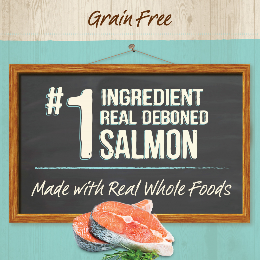 Deboned Salmon, Salmon Broth, Chicken, Chicken Liver, Natural Flavor, Dried Cranberries, Minerals (Potassium Chloride, Magnesium Proteinate, Zinc Sulfate, Ferrous Sulfate, Manganese Sulfate, Copper Sulfate, Potassium Iodide), Guar Gum, Menhaden Fish Oil, Choline Chloride, Taurine, Vitamins (Vitamin E Supplement, Thiamine Mononitrate, Niacin, Calcium Pantothenate, Vitamin A Supplement, Menadione Sodium Bisulfite Complex, Pyridoxine Hydrochloride, Riboflavin Supplement, Vitamin B-12 Supplement, Biotin, Folic Acid, Vitamin D-3 Supplement), Salt. B290322Guaranteed Analysis