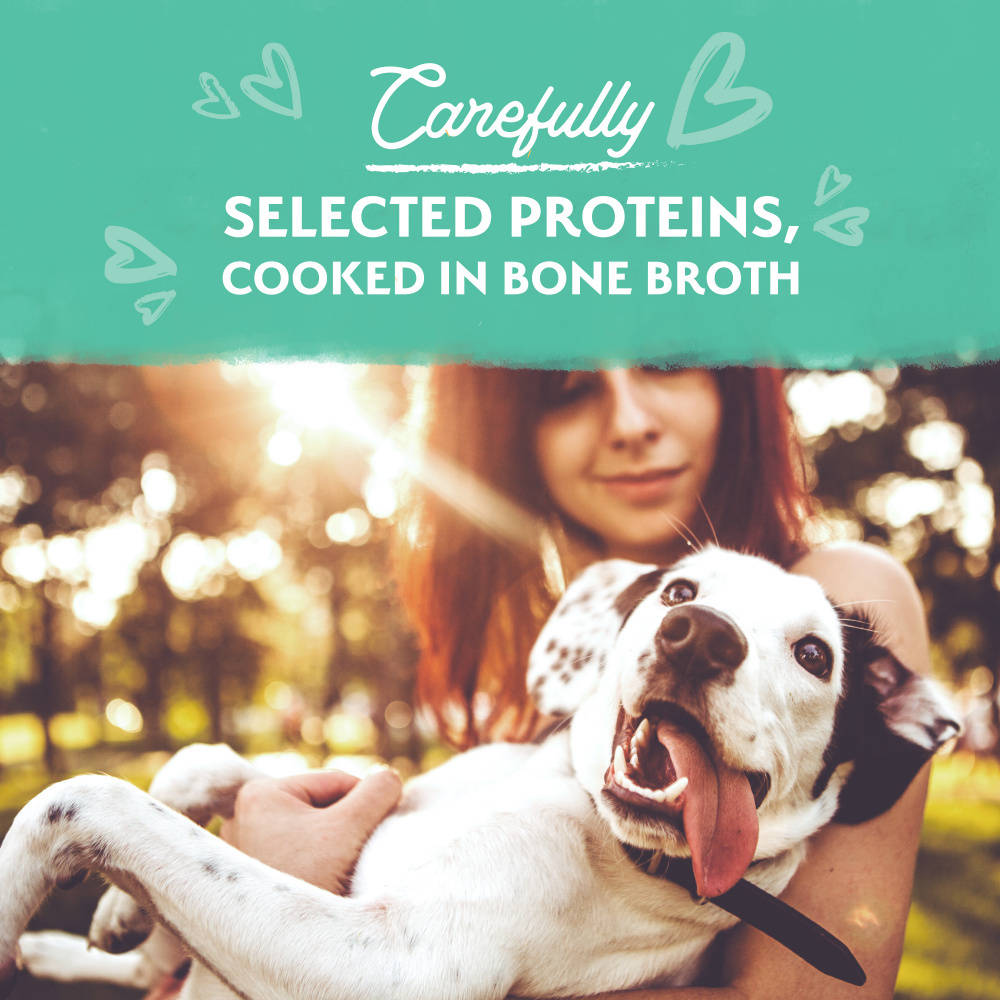 Single animal proteins from chicken, ?beef, or duck. Hearty stews cooked in broth?. Serve as a complete meal or kibble topper??. Convenient, easy-open carton makes everyday feeding easy. Complete & balanced for adult dogs.??
