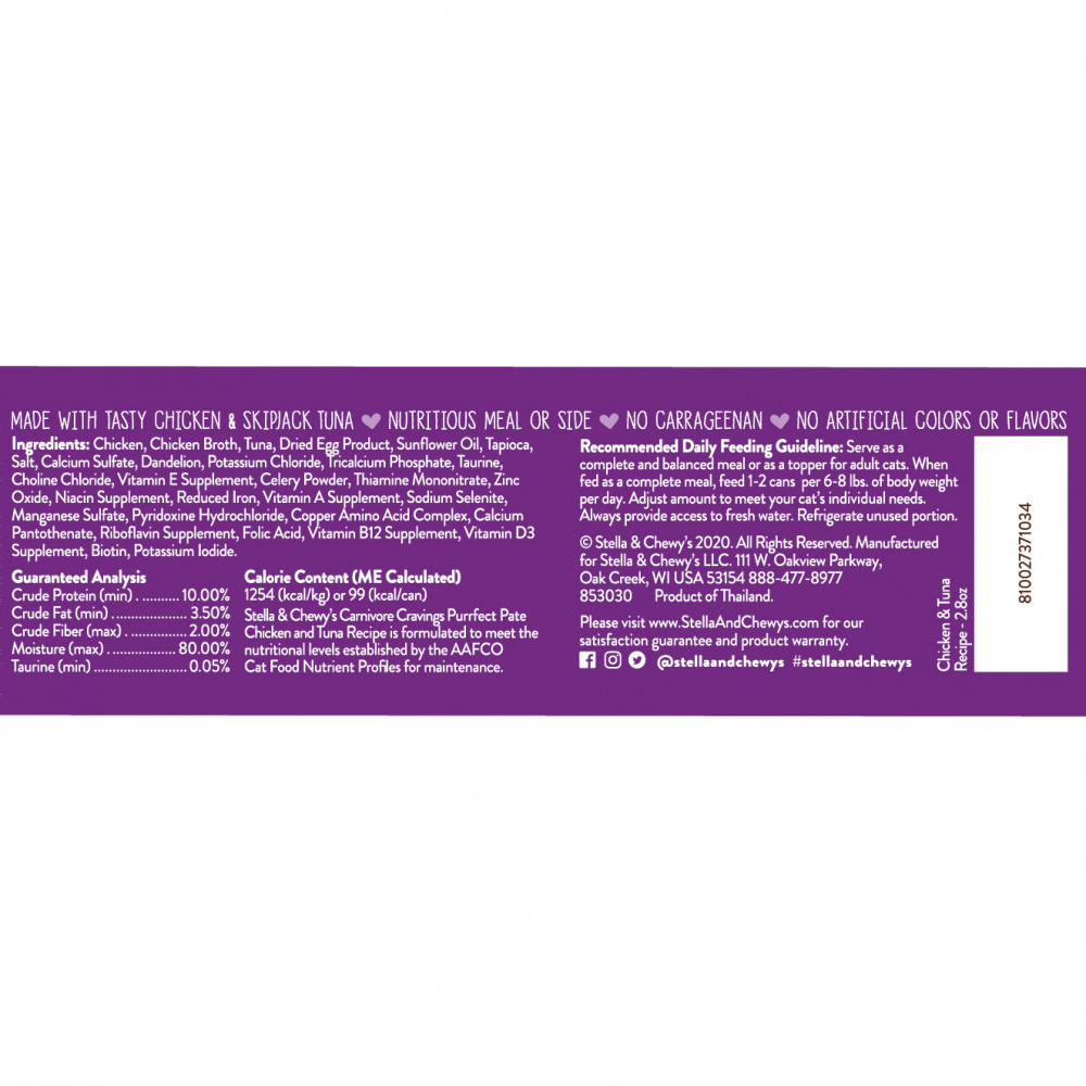Stella & Chewy's Carnivore Cravings Purrfect Pate Chicken & Tuna Pate Recipe in Broth Wet Cat Food