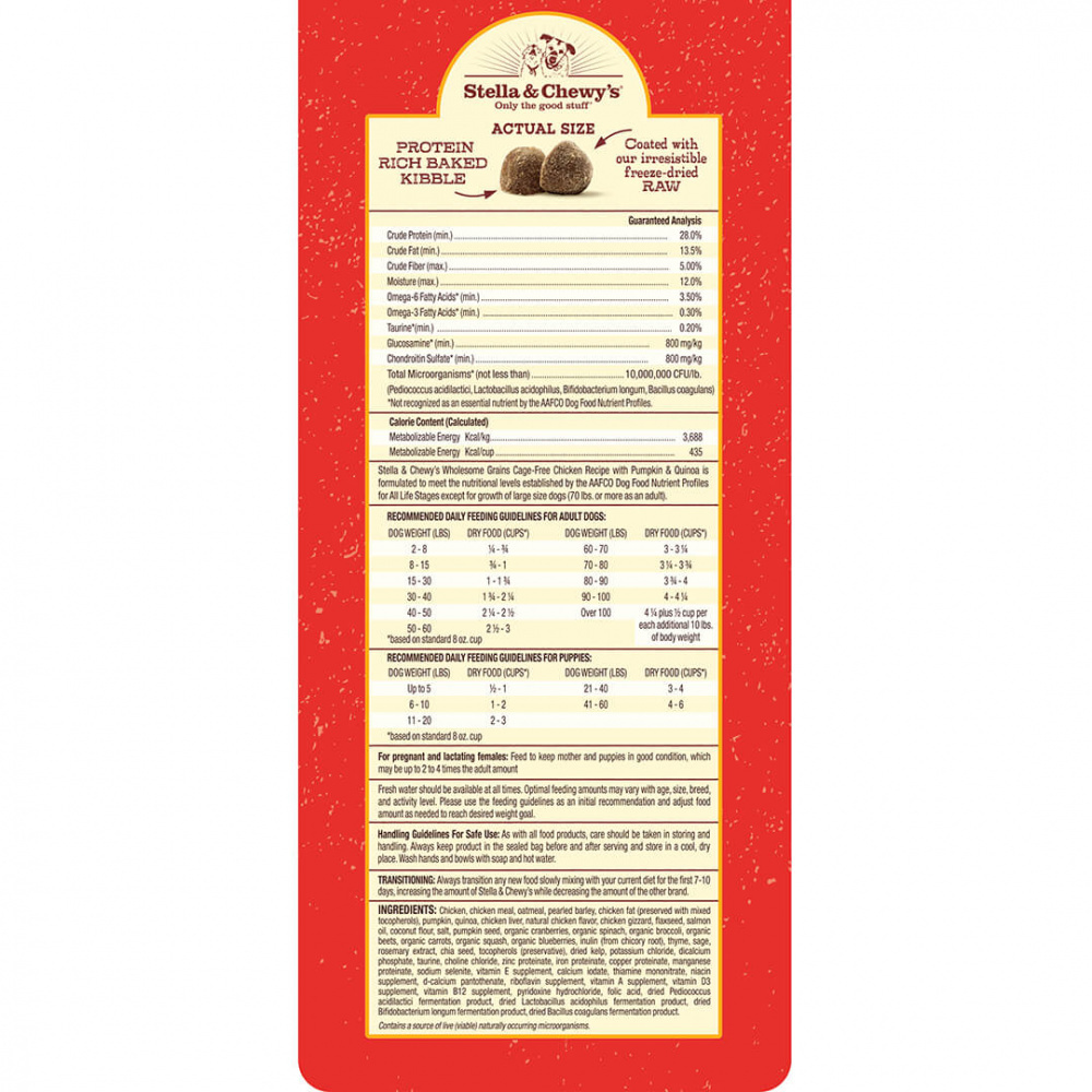Stella & Chewy's Raw Coated Kibble With Wholesome Grains Cage Free Chicken, Pumpkin & Quinoa Recipe Dry Dog Food