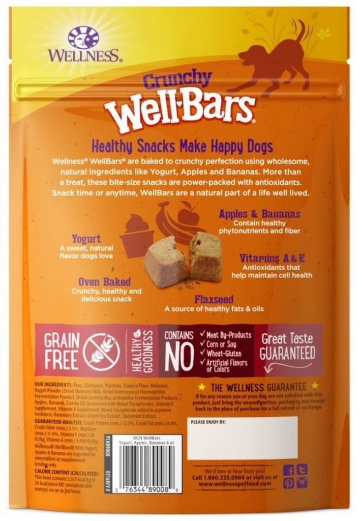 Wellness Natural Grain Free Wellbars Crunchy Yogurt, Apples and Bananas Recipe Dog Treats