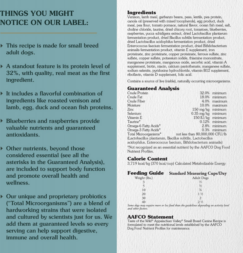 Taste Of The Wild Grain Free Appalachian Valley Small Breed Recipe Dry Dog Food