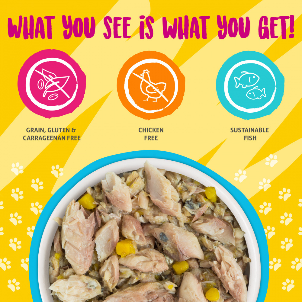 Aloha! Your cat will be cheesing from ear to ear while they hula dance after eating the Weruva Meow Luau With Mackerel and Pumpkin Canned Cat Food. Packed with whole mackerel, pumpkin, and plenty of omega-fatty 3 your cat's coat will be shining and ready to show off to the world. The Weruva Meow Luau With Mackerel and Pumpkin Canned Cat Food is free of grain, msg, GMOs, and carrageenan for any little carnivores who want to stay healthy for their summer trip to Hawaii.
