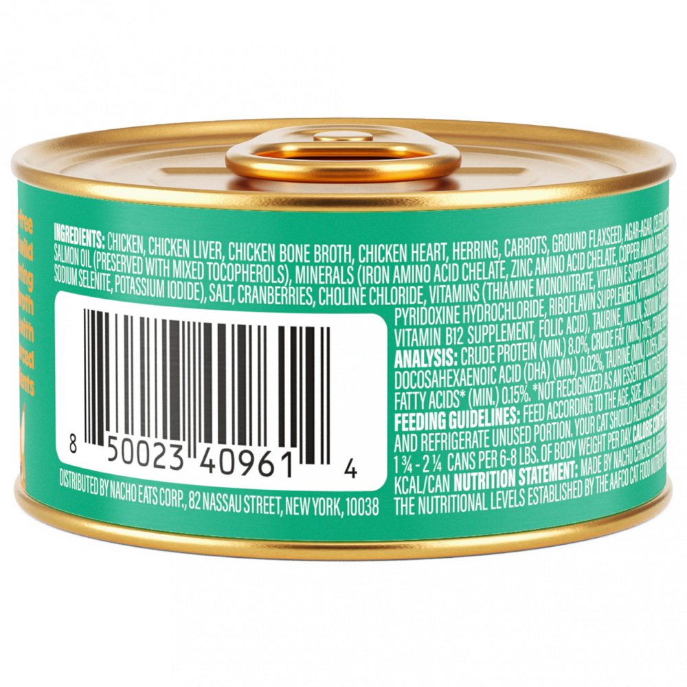 Made in USA with the finest globally sourced ingredients; Complete and Balanced natural wet cat food with added vitamins, minerals and taurine; Grain-free recipe! Premium, cage-free chicken and wild-caught whole herring are our first two ingredients; Served with hydrating bone broth for extra protein and flavor; Fruits and vegetables provide fiber and powerful antioxidants to support the immune system; Prebiotics help support digestive health; With Omega-3 and Omega-6 fatty acids for healthy skin and super shiny coats; No corn, wheat, or soy. No artificial colors, flavors, or preservatives; Made in USA from globally-sourced ingredients; Formulated without grains