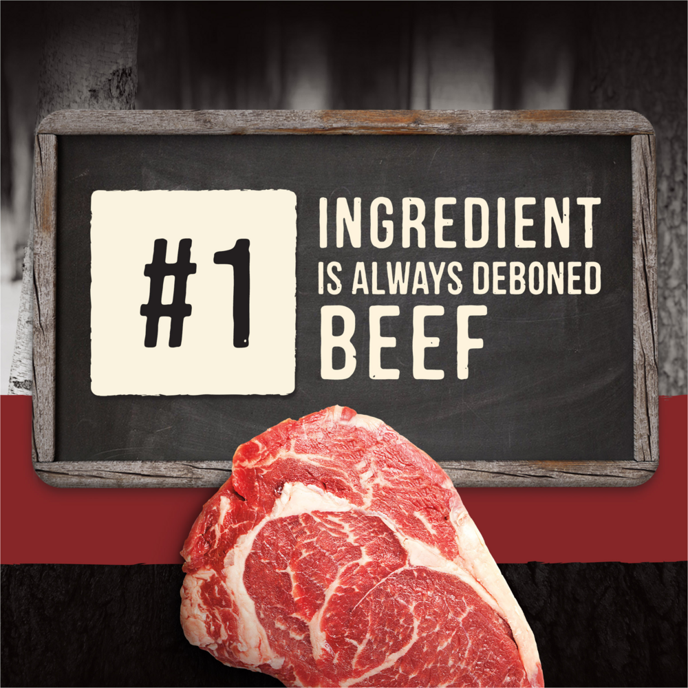 Dish up the real meat your dog deserves with Merrick Backcountry Grain Free Wet Dog Food Chunky Beef Dinner in Gravy. Tender and chunky, this adult dog food starts with real deboned beef for a protein-rich formula that helps your dog build and maintain healthy muscle tissue and healthy energy levels. Natural ingredients go into every batch for wholesome goodness, along with vitamins and minerals for complete nutrition. Every chunky serving is grain- and gluten-free, so your dog gets a nutrient-rich beef dog food at mealtime. This hearty dog food gravy formula is crafted in our Hereford, TX kitchen and cooked in the USA..