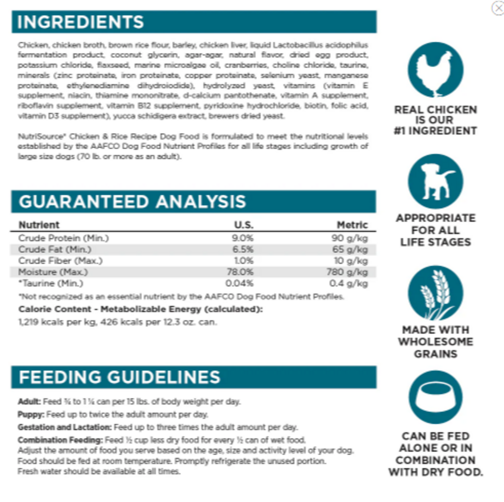 NutriSource Adult Chicken & Rice Canned Dog Food