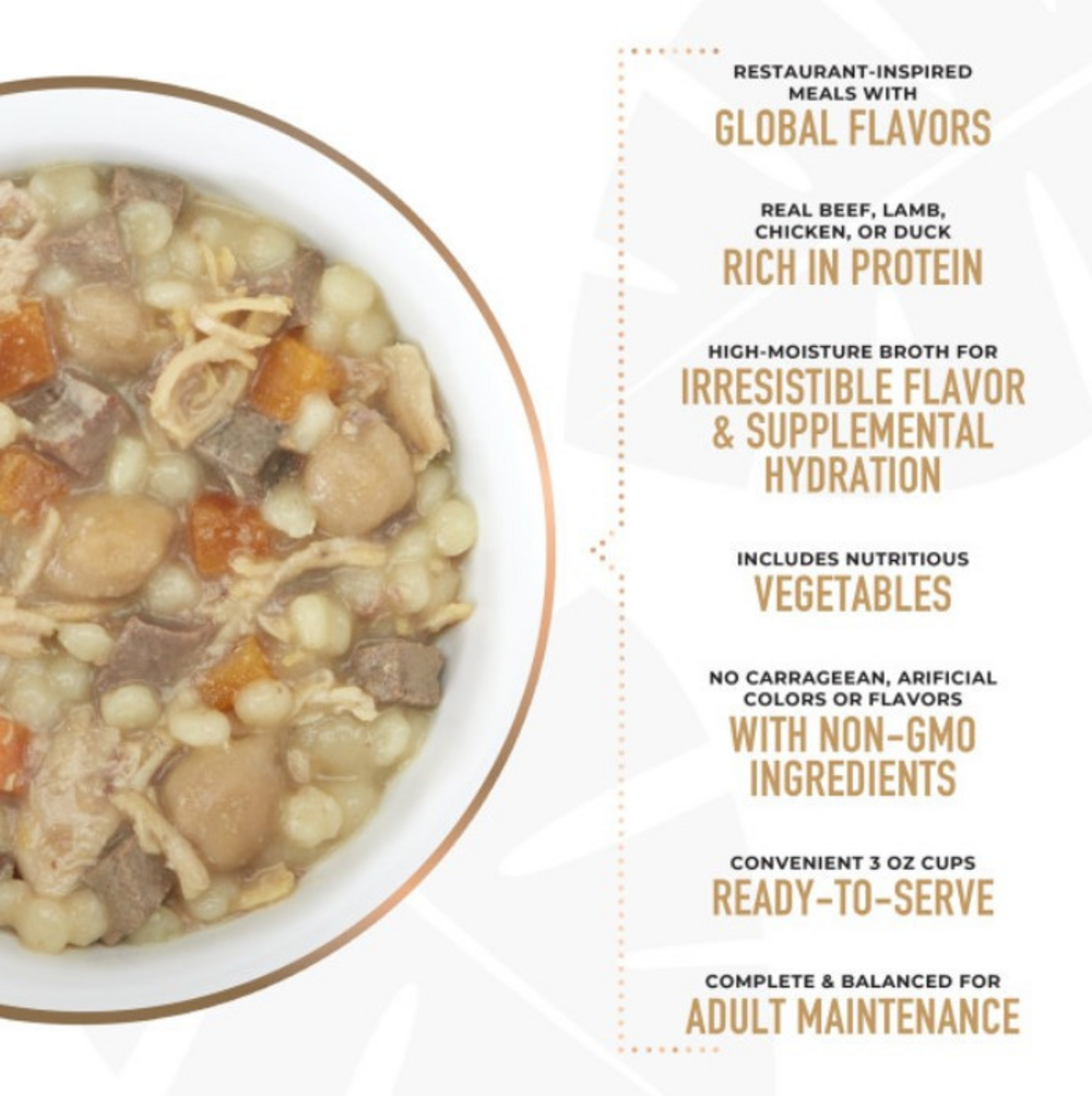 Treat your pup to a gourmet international experience with Tiki Dog Italian Carbonara French Burgundy Spanish Paella and Asian Stir fry. All are hearty delicatessen meals with savory meats served over pasta or rice. WET DOG FOOD – Made with real Meat and other high-quality ingredients, and your pup will look forward to meal time. RECIPE DESIGNED FOR ADULT MAINTENANCE –Tiki Dog Taste of the World is formulated to meet the nutritional levels established by the AAFCO Dog Food Nutrient Profiles for Adult Maintenance. HIGH PROTEIN & MOISTURE – Count on the broth to provide protein and supplemental moisture at each meal.