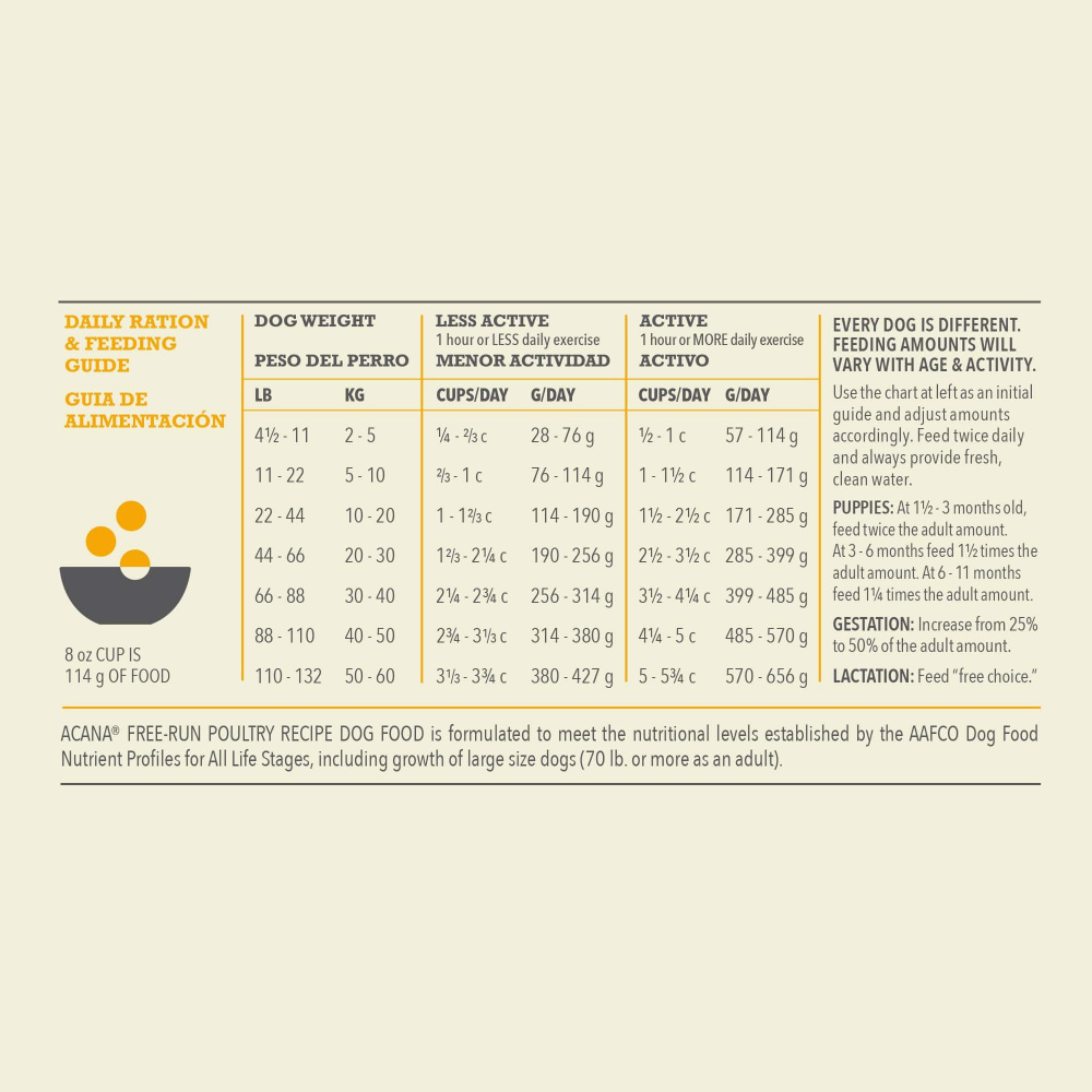 - One (1) 13 lb bag of ACANA Free-Run Poultry Recipe Dry Dog Food