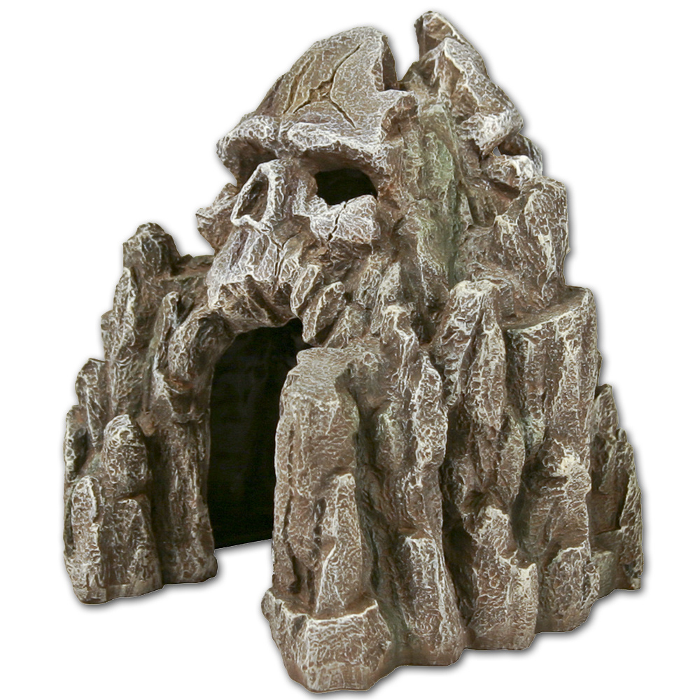 Skeleton head with a mouth cave opening eerily carved right into the side of a mountain, how much more could you ask for in scary? A cool & creepy addition to any aquarium or terrarium.