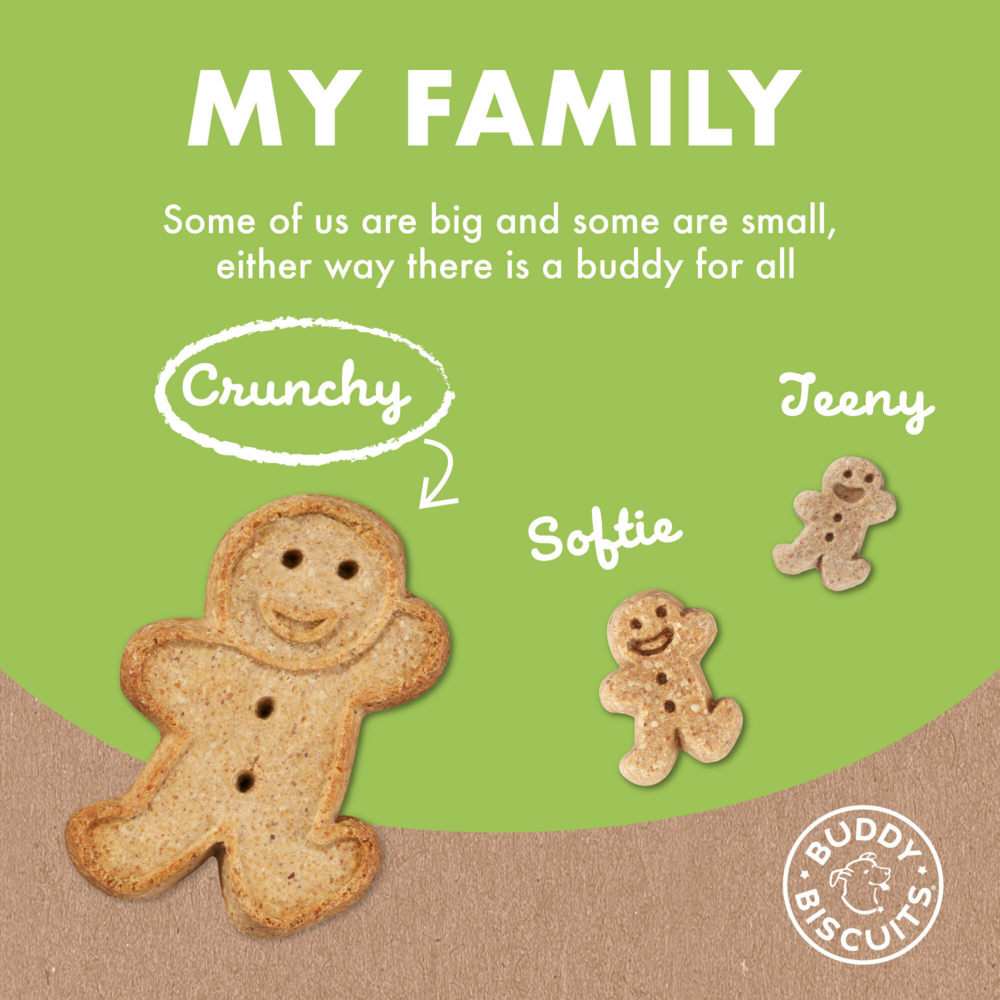 Smaller Size, Same Big Taste!Smaller dogs need smaller treats, but they crave the same big flavors. We make Itty Bitty Buddy Biscuits with the same natural ingredients as our Oven Baked Buddy Biscuits, but their size is just perfect for little dogs.All naturalSimple, clean, and wholesome ingredientsPerfect for small dogsGreat for all dogs, even those with allergies or sensitivitiesNo artificial colors, flavors, or preservativesFree of corn, yeast, sugar, salt, and soyWheat free option availableMade in USA
