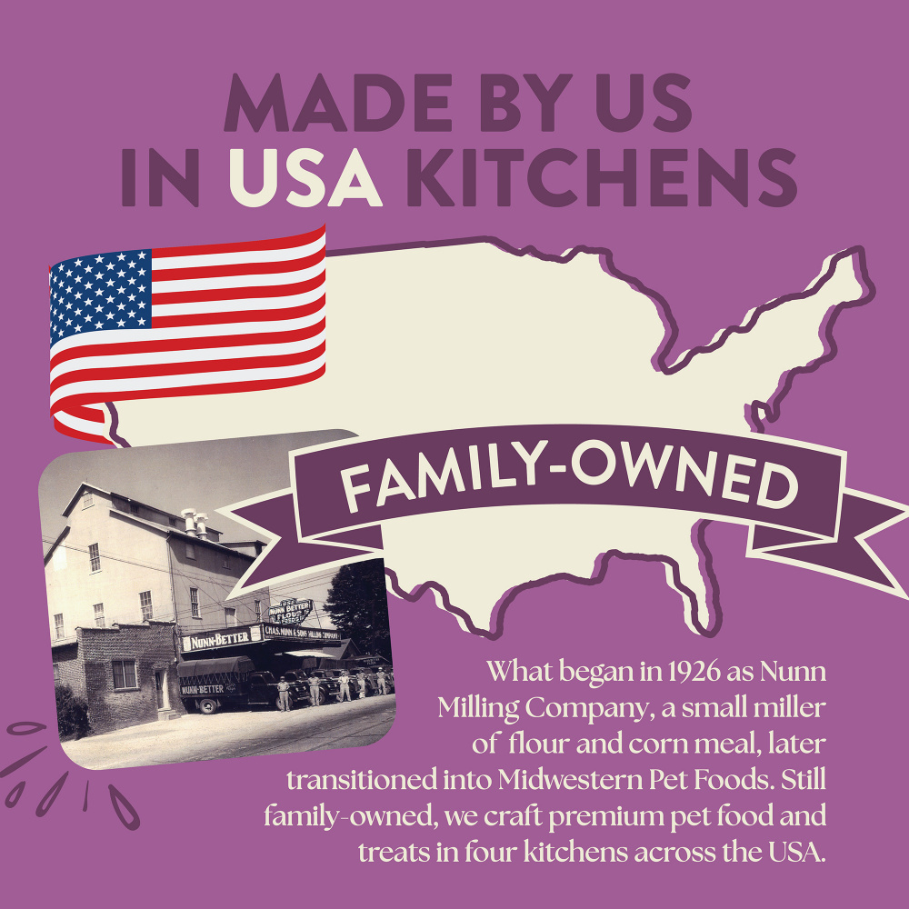 Unrefined Roasted Lamb Recipe with ancient grains and superfoods is a dry dog food recipe packed with a variety of 14 nutrient-rich superfoods like carrots, cranberries, and butternut squash. Paired with ancient grains like quinoa and oatmeal and enriched with Taurine for heart health, this lamb dog food recipe is crafted for dogs and puppies alike who are a little unrefined themselves. Grass-fed, free-range lamb is the #1 ingredient. Grains like barley, oats, quinoa, and chia provide great sources of fiber and protein. Butternut squash, salmon meal, and blueberries are just the start of nutrient-rich superfoods. Enriched with Taurine for heart health. Chicken allergy? Your dog will have no problem with this chicken free dog food recipe!. Added pre-, pro-, and postbiotics.