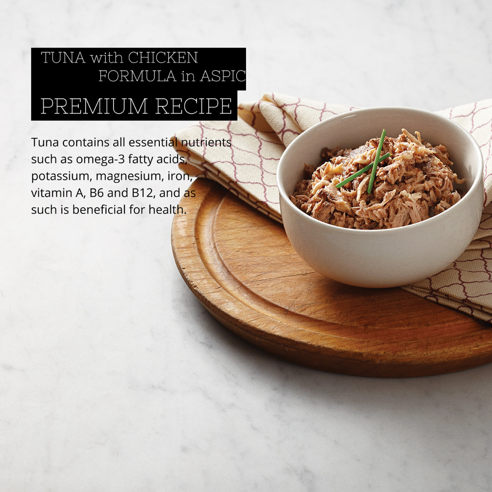Tuna Whole Meat, Water Sufficient For Processing, Chicken Meat (Boneless, Skinless), Sunflower Seed Oil, Dicalcium Phosphate, Choline Chloride Liquid, Taurine, Oligo Sugar, Vitamin E, Zinc Sulfate, Ferrous Sulfate, Thiamine Mononitrate (Vitamin B1), Nicotinic Acid (Vitamin B3), Calcium Pantothenate, Vitamin A Supplement, Potassium Iodide, Manganese Sulfate, Vitamin D3 Supplement, Copper Sulfate, carrageenan, menadione, Riboflavin Supplement (Vitamin B2), Pyridoxine Hydrochloride (Vitamin B6), Folic Acid, Vitamin K3 Supplement, Vitamin B12 Supplement