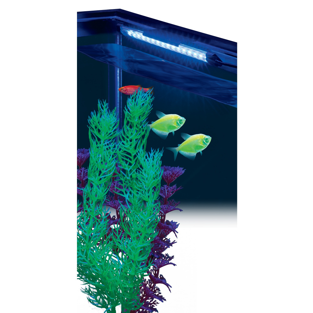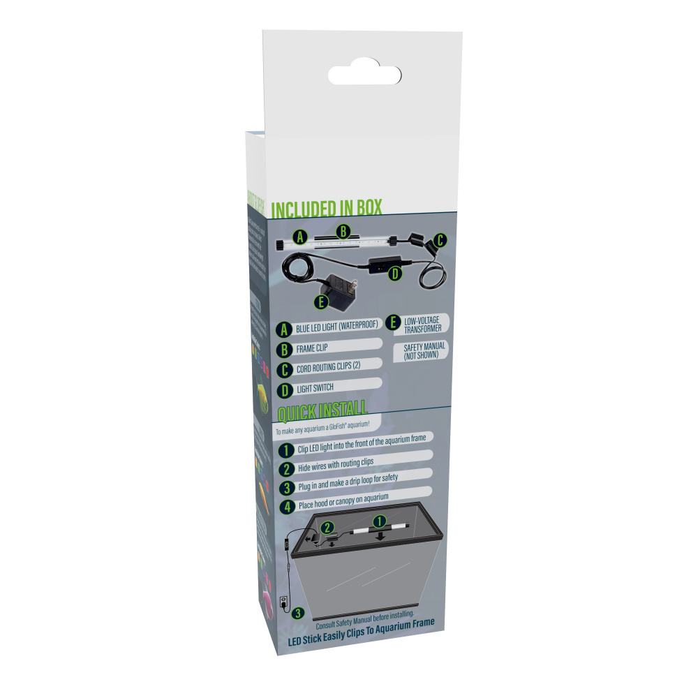 - Low voltage, energy efficient LED Light provides the right amount of illumination to highlight the fish and decor.