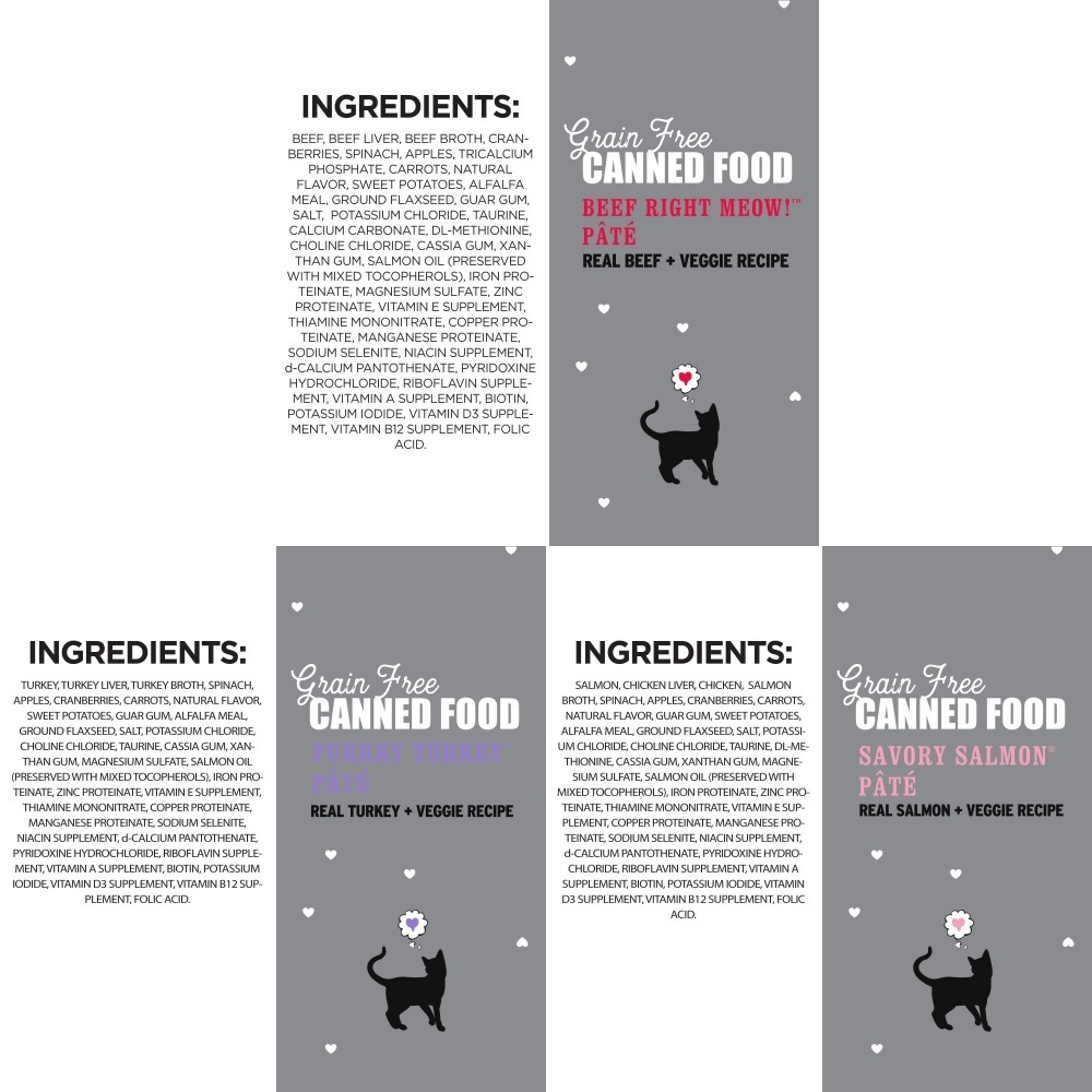 I and Love and You Beef, Right Meow!, Savory Salmon, and Purrky Turkey Pate Multi-Pack Canned Cat Food