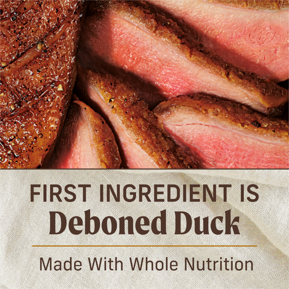 - Real deboned duck is the first ingredient