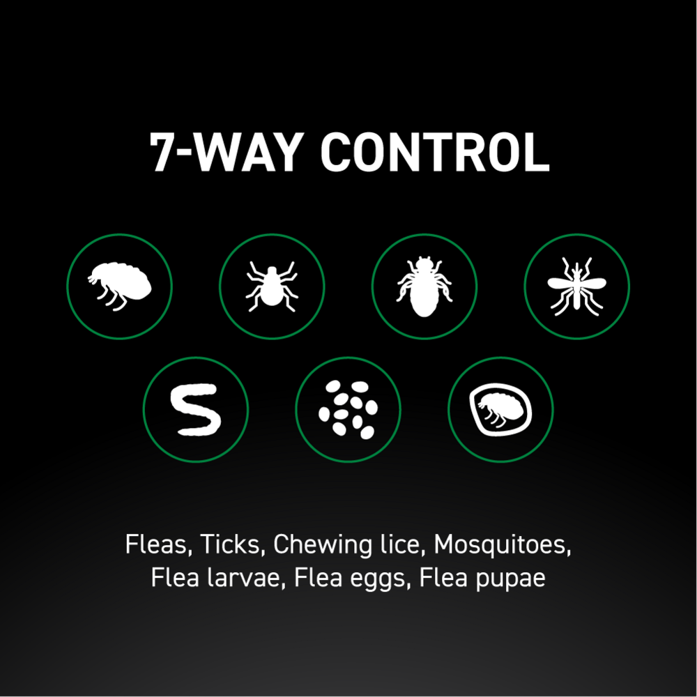 Starts to Kill Fleas and Ticks in 15 MINUTES. Kills Fleas, Ticks, Mosquitoes, Chewing Lice, Flea Eggs, Larvae & Prevents the Development of Flea Pupae. Kills Fleas & ticks for up to 30 days. Easy to Use Application.
