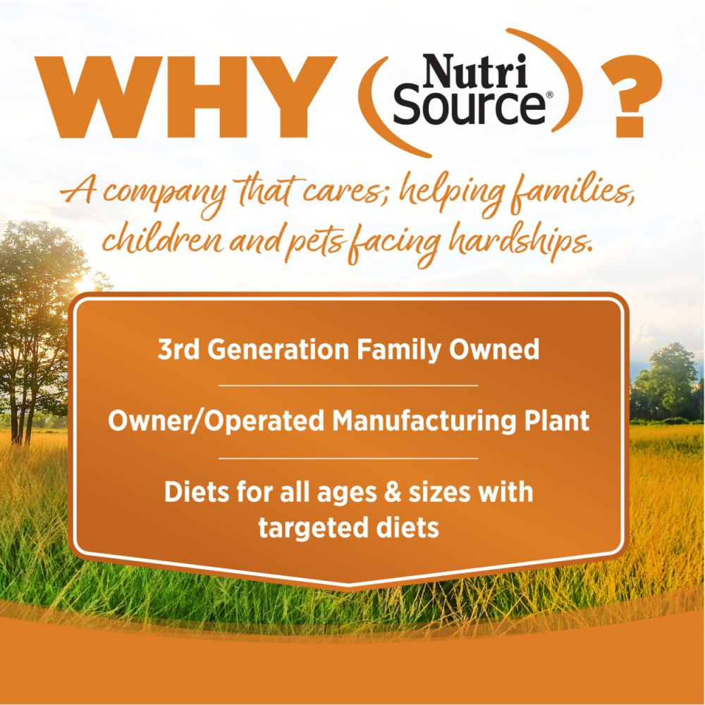 - NutriSource® grain inclusive formulas deliver compact nutrition and include prebiotics and probiotics to help support a healthy gut.