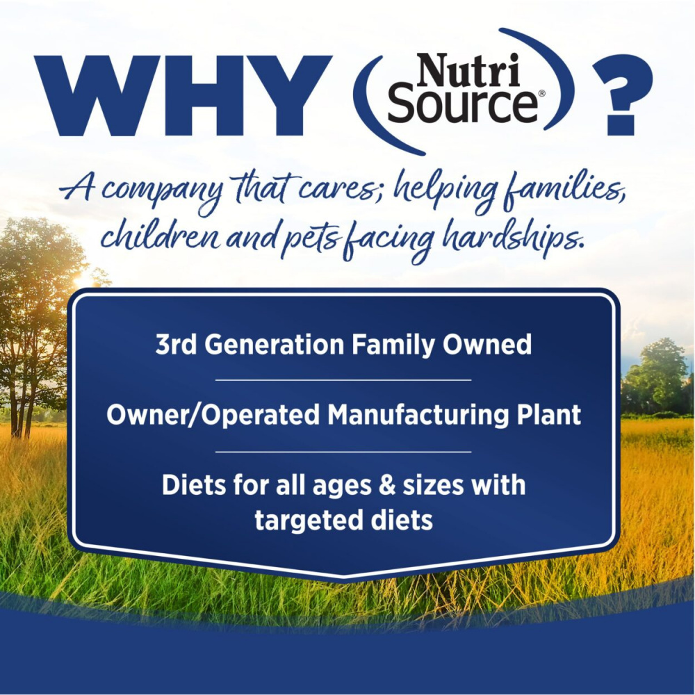Nutrisource pet food has created the highest-quality food for your beloved pets. Nutrisource is formulated with the best ingredients and supplements that guarantee whole body health. Priority number 1 is to deliver the safest, most nutritious foods possible by examining all raw ingredients and testing every product during and after cooking. A deep rooted sense of family, community and integrity guides every decision, from the top to the bottom. With options for every dog and cat, such as large breed, small breed, seafood, beef, chicken, wet, dry, grain-free, and more, you'll know your pet is getting the very best with Nutrisource.