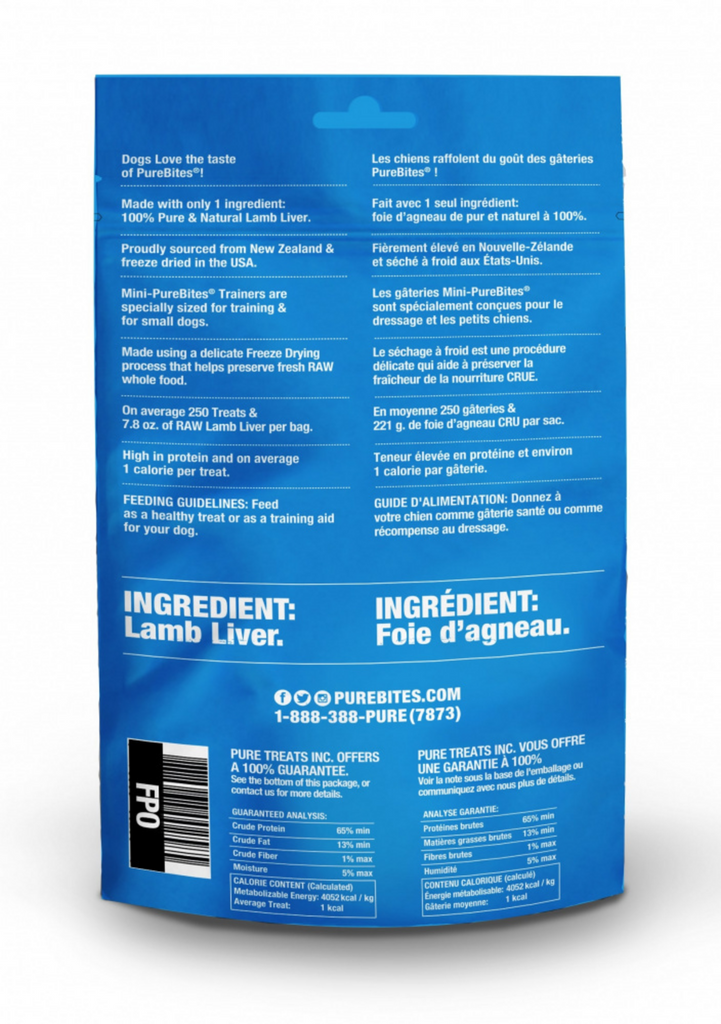 - Mini-PureBites® Freeze Dried Trainers are specially sized for training & for small dogs